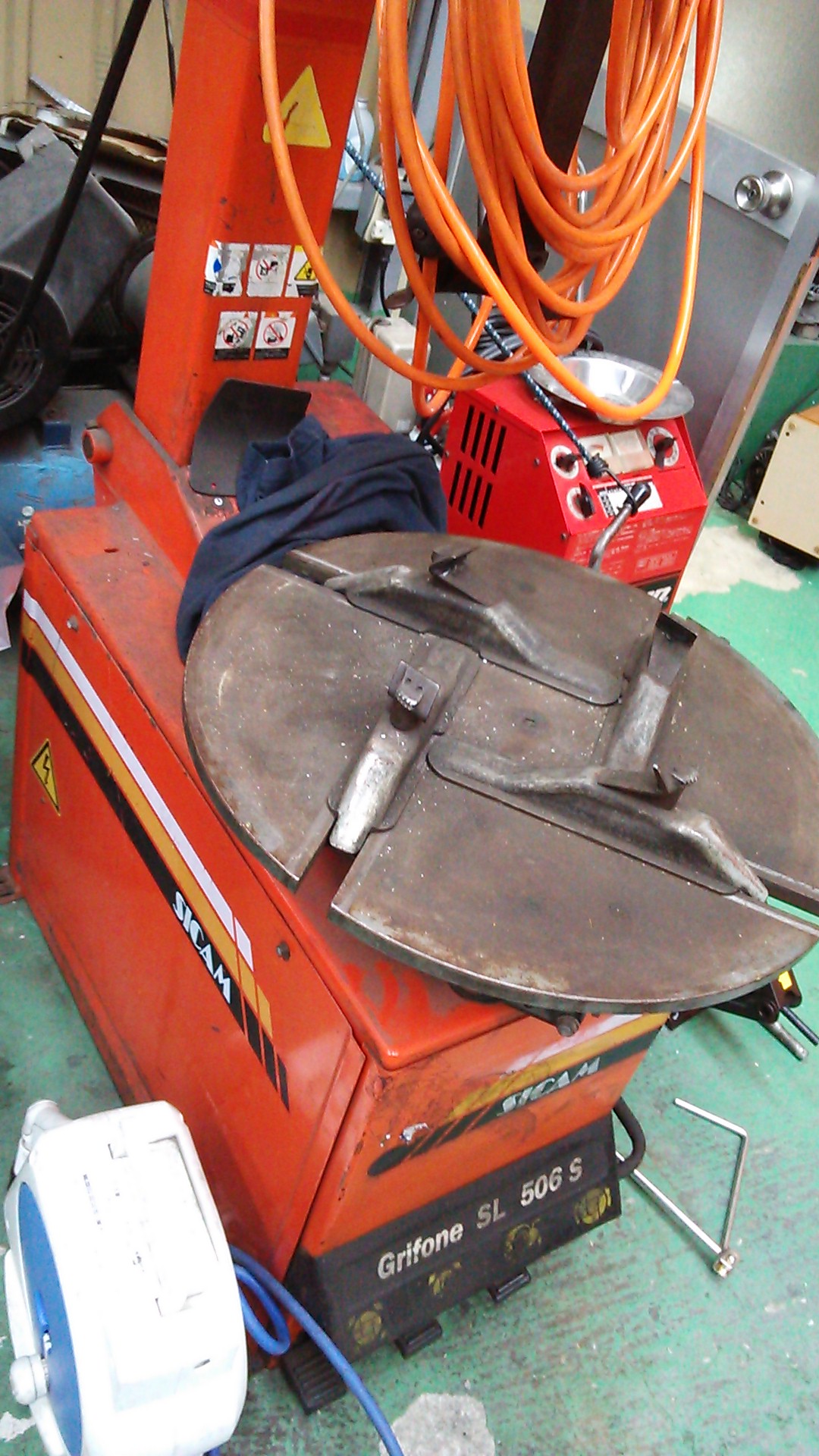 当店はタイヤの組み換えから溶接、プラズマ(電気で鉄などをカットする機械)
